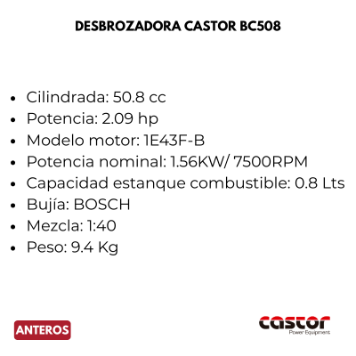 Ahorra tiempo y dinero en el cuidado de tu jardín y áreas verdes con la Múltifuncional Castor MT508. Funciona como cortaseto, podadora de altura, desbrozadora y disco de corte. Con 1 motor de 2 tiempos y 2 caballos de fuerza, tienes garantizada una mayor rapidez al realizar las tareas más pesadas en la mantención de jardines como la poda de ramas gruesas o cortes de mayor envergadura.